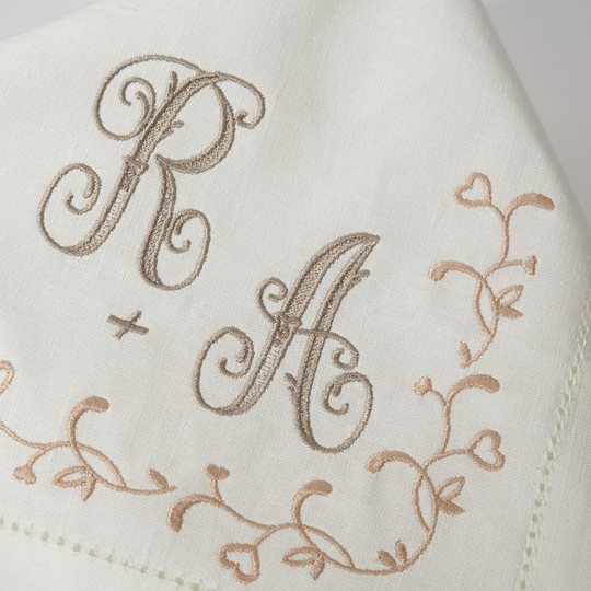 Wir sticken diese direkt auf das Wäschestück oder fertigen die Stickerei als Aufnäher.